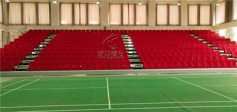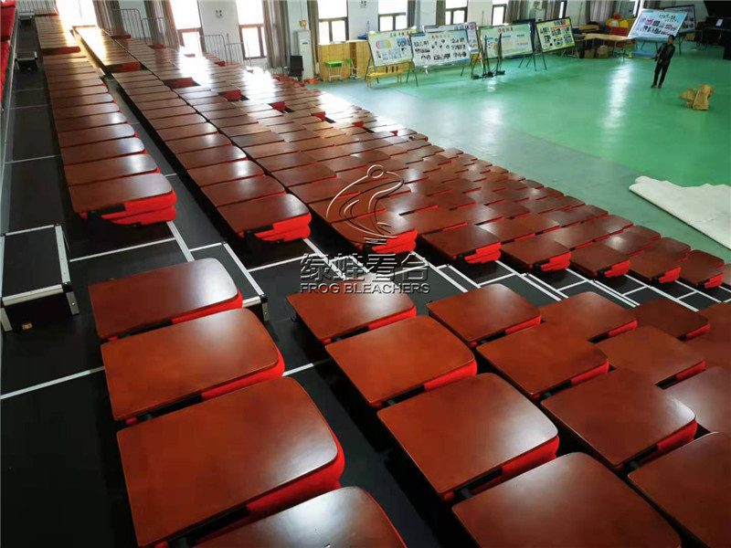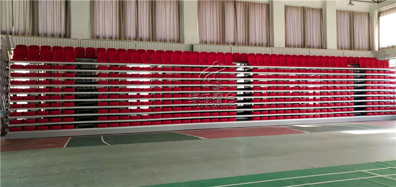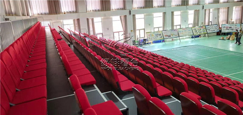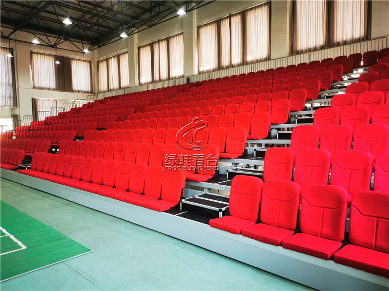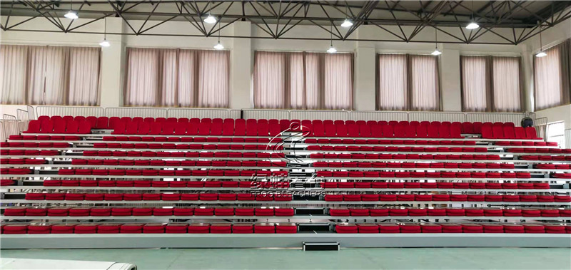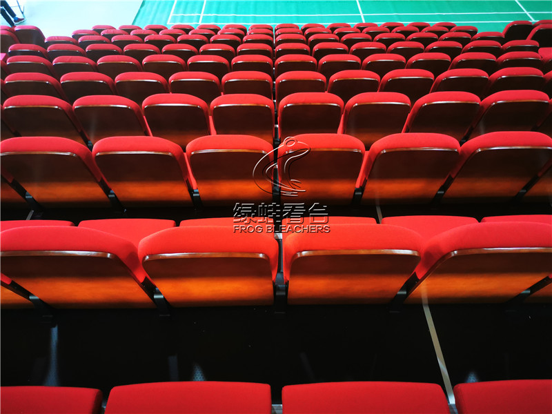 看臺(tái)類型:前置式高靠背折疊翻板軟包椅電動(dòng)伸縮看臺(tái)