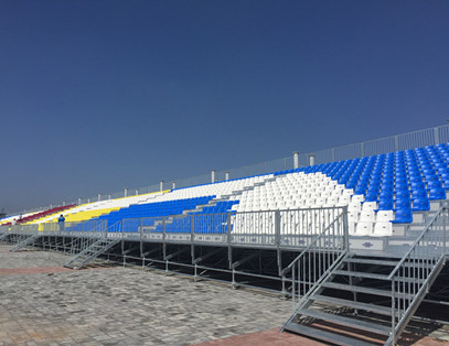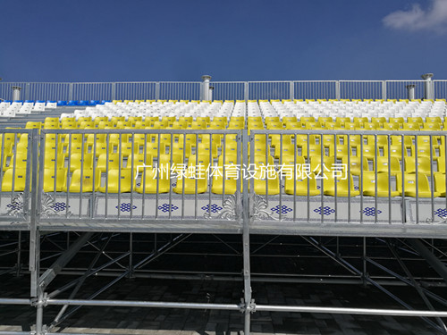 看臺(tái)整體基礎(chǔ)架采用可拆卸鍍鋅結(jié)構(gòu),普通觀眾席選用中靠背中空吹塑椅,貴賓區(qū)選用帶扶手翻板吹塑椅,看臺(tái)整體美觀大氣,成為該景區(qū)最大的亮點(diǎn)!