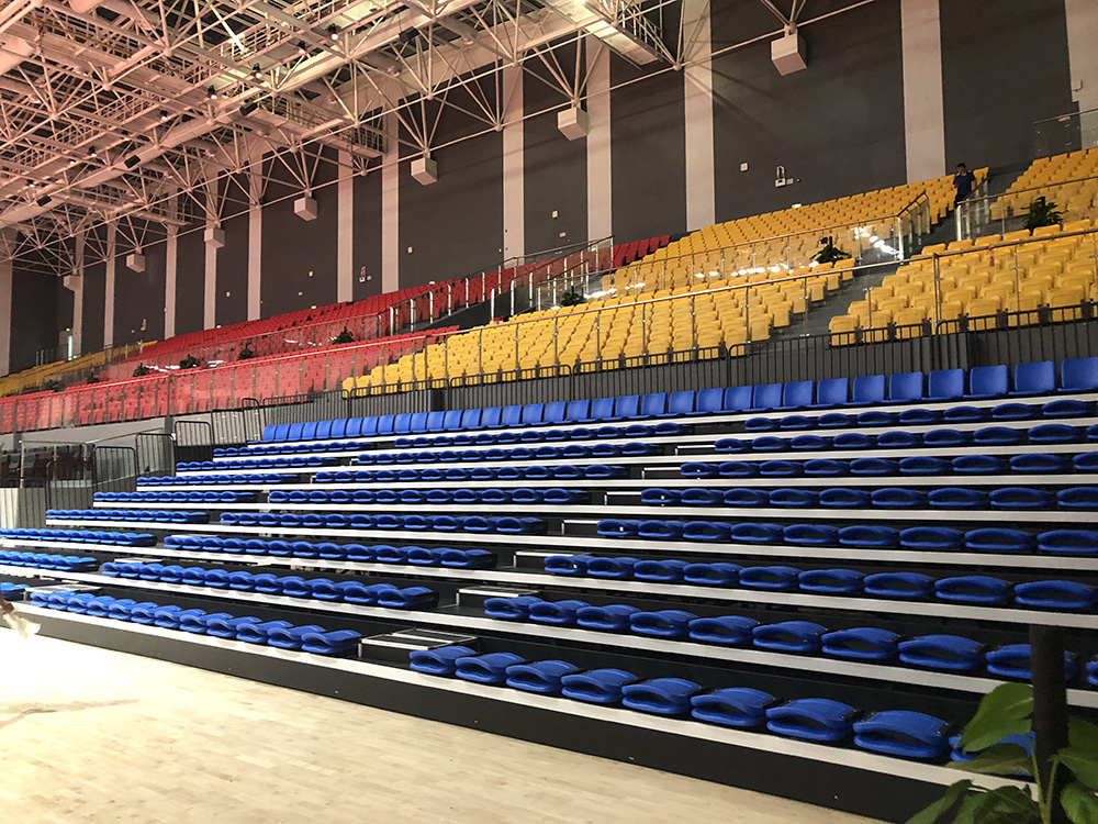 綠蛙看臺(tái)產(chǎn)品最終在眾多競(jìng)爭(zhēng)者中脫穎而出,成為韶關(guān)體育公園的看臺(tái)座椅產(chǎn)品的分包供應(yīng)商。從5月份起,我們就進(jìn)入緊張的安裝環(huán)節(jié),在廣東省青少年乒乓球錦標(biāo)賽比賽日前,成功的將4500位的固定座椅安裝完畢。并于7月4日將活動(dòng)看臺(tái)1600位安裝完畢。室內(nèi)體育館整體氣勢(shì)磅礴,寬敞明亮,可媲美國(guó)內(nèi)任何一個(gè)甲級(jí)體育館。