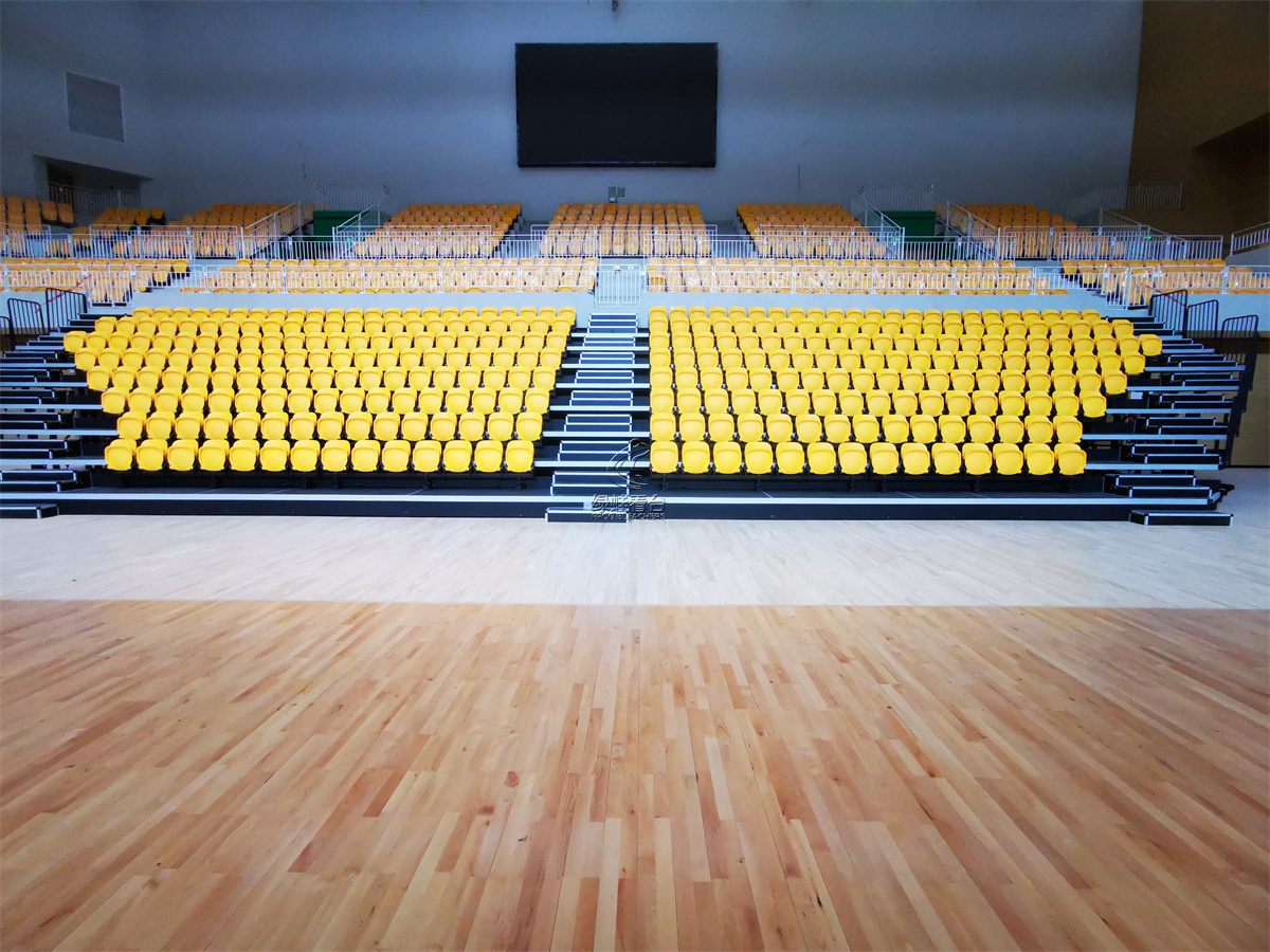 體育組團(tuán)由A、B、C三個館組成,其中A館為體育館,一樓為比賽場地,四周有伸縮活動看臺2010座,二樓為固定坐席2116座和主席臺28座,整體可容納4000多人。座椅全部采用氣輔式注塑翻板座椅,整體高檔大氣,且翻折后易于通行。伸縮活動看臺采用后置式安裝方式與體育館整體氣質(zhì)比較符合。