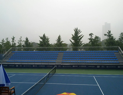 該看臺(tái)為2015ITF國際男子網(wǎng)球巡回賽(武漢站)比賽用看臺(tái),看臺(tái)設(shè)置在網(wǎng)球場(chǎng)兩側(cè),看臺(tái)基礎(chǔ)為水泥臺(tái)階做防水,并刷有油漆。看臺(tái)上安裝低靠背吹塑椅,基礎(chǔ)顏色與座椅顏色相得益彰,整體美觀大方。