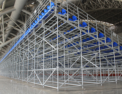 南京青奧會馬術(shù)館看臺采用可拆卸拼裝看臺,可拆卸拼裝看臺是一種新型的臨時看臺系統(tǒng),整體結(jié)構(gòu)采用標(biāo)準(zhǔn)件、模塊化設(shè)計,看臺的各種部件,如支架,踏板,側(cè)板,護(hù)欄,座椅等,皆可隨意 搭配組裝,可根據(jù)場地及觀眾席位需要進(jìn)行各種層高、位數(shù)的拼裝組合。具有結(jié)構(gòu)簡單,搭建及拆卸方便,便于運輸及儲存等特點,可廣泛應(yīng)用于體育場館,演藝活動,各種公開活動等臨時需要搭建觀眾看臺的場所。