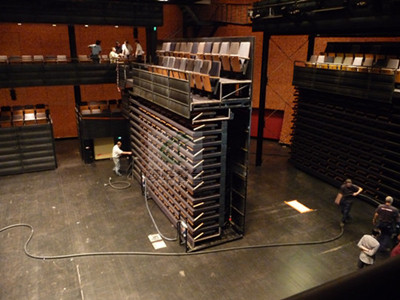 1 、鏡框式臺口劇場宜選在舞臺面臺口線中心臺面處;