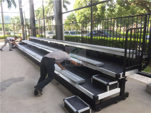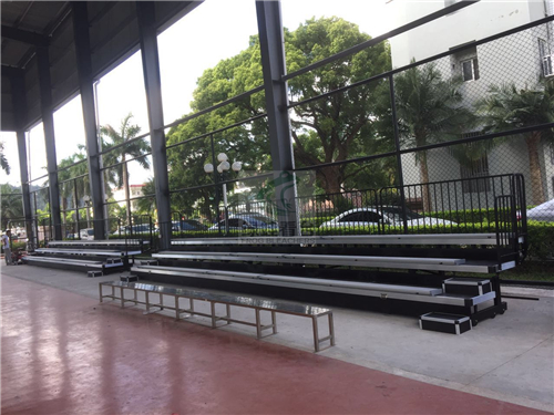 綠蛙簡易伸縮看臺入住深圳坪山社區(qū),與周圍建筑結(jié)構(gòu)、景色渾然合一,量身定做,簡潔,大方。