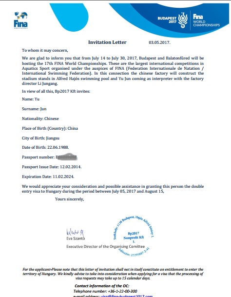 2017年比賽場地方代表到中國尋購臨時游泳比賽看臺,被綠蛙看臺的技術折服,于諸多廠家選擇中綠蛙,很快簽訂合作協(xié)議,并向綠蛙公司發(fā)送工作邀請函。
