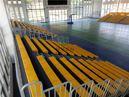 江西九江武寧二中綠蛙伸縮看臺(tái)安裝完畢
