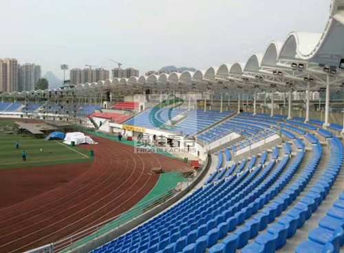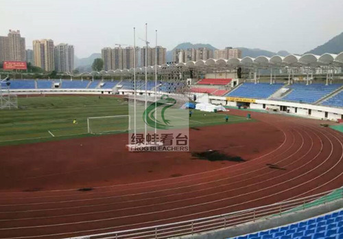 安裝了綠蛙看臺(tái)座椅后的體育場(chǎng),如同披上了彩色的新裝,主席臺(tái)選用紅色,其他觀(guān)眾席選用藍(lán)色。整體大氣磅礴,為美麗的山城貴定增添了新的一筆彩色。