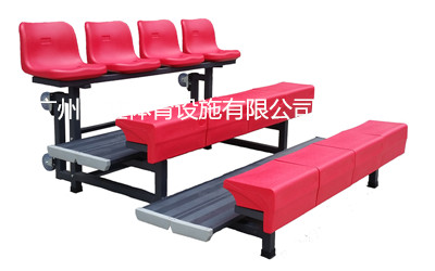 此看臺(tái)采用鋼為支撐架,鋁材為雙踏板,可以適應(yīng)高強(qiáng)度的踩踏。前兩排座椅選用無靠背吹塑條凳,后一排采用中靠背吹塑椅,滿足了坐感的舒適要求。看臺(tái)側(cè)向裝有萬向輪,翻起看臺(tái)可以移動(dòng)。使用和儲(chǔ)存都很便捷。