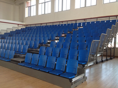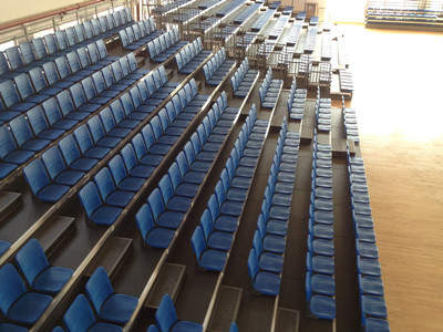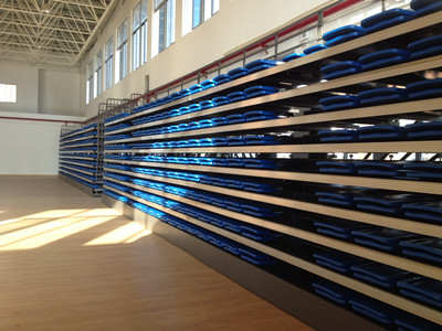 學(xué)校新建體育館,由綠蛙公司提供伸縮看臺(tái),截止昨日看臺(tái)已全部安裝完畢,已具規(guī)模!