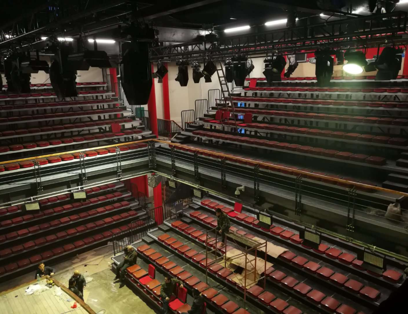觀眾席采用高靠背軟包座椅手動伸縮看臺,現(xiàn)場能容納500名觀眾。為力求節(jié)目最好的觀賞效果,綠蛙看臺根據(jù)整個(gè)場館的舞臺及空間位置特點(diǎn),對上下樓的每組看臺起高及錯(cuò)層高均為量身定做。服務(wù)好客戶,是綠蛙看臺的本職所在。