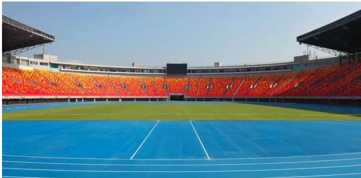 《聚焦全運場館聚力趕超十四運融媒體采風團》陜西省十四運體育館一進入體育場,就被它紅黃兩色的座位和“柏林藍”的跑道所吸引。2021年,陜西省體育館將成為十四運會開幕式的備用場館和女子成年組比賽的足球場。