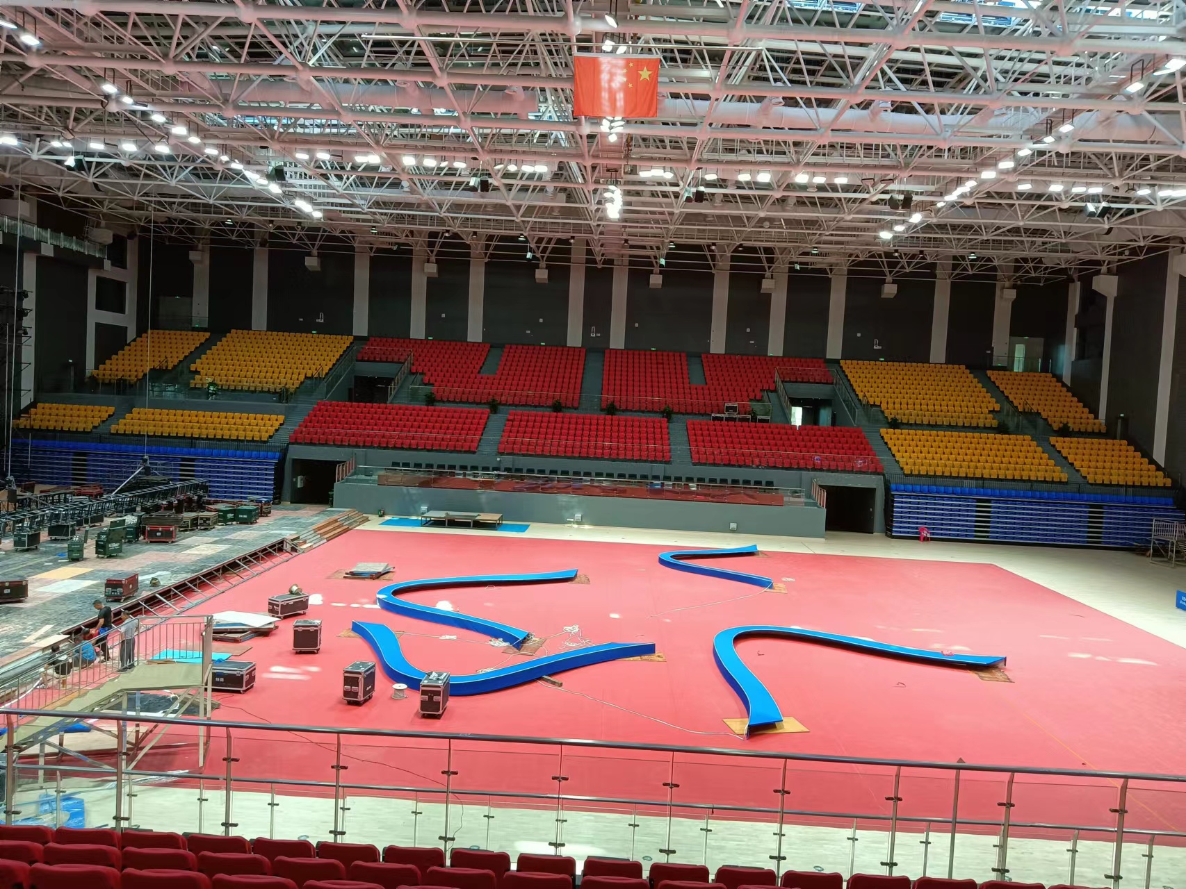 前期籌備工作,綠蛙看臺(tái)安裝后,舞臺(tái)燈光音響安裝現(xiàn)場(chǎng)照片: