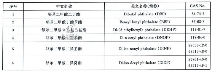 鄰苯二甲酸酯,亦稱酞酸酯。統(tǒng)稱鄰苯二甲基酯類。是指主要作為增塑劑使用,PAE類是使用最廣泛、品種最多、產(chǎn)量最大的增塑劑。由于鄰苯二甲酸酯增塑劑與塑料主體結(jié)構(gòu)之間不以化學(xué)鍵相結(jié)合,故在使用過程中會不斷從塑料中釋放出來,污染環(huán)境。鄰苯二甲酸酯可通過呼吸道、消化道和皮膚等途徑進入人體,是一種重要的內(nèi)分泌干擾素,會使男性精子數(shù)量減少、活動能力下降,干擾男性生殖道的正常發(fā)育,增加女性患乳腺癌的概率等。1997年,美國將鄰苯二甲酸二甲酯(DMP)、鄰苯二甲酸二乙酯(DEP)、鄰苯二甲酸二丁酯(DBP)、鄰苯二甲酸丁芐酯(BBP)、鄰苯二甲酸二乙基乙酯(DEHP)、鄰苯二甲酸二正辛酯(DOP)列為優(yōu)先監(jiān)測控制的污染物名單。塑料家具有害物質(zhì)限量標準中的鄰苯二甲酸醋指的是下表中的鄰苯二甲酸醋。
