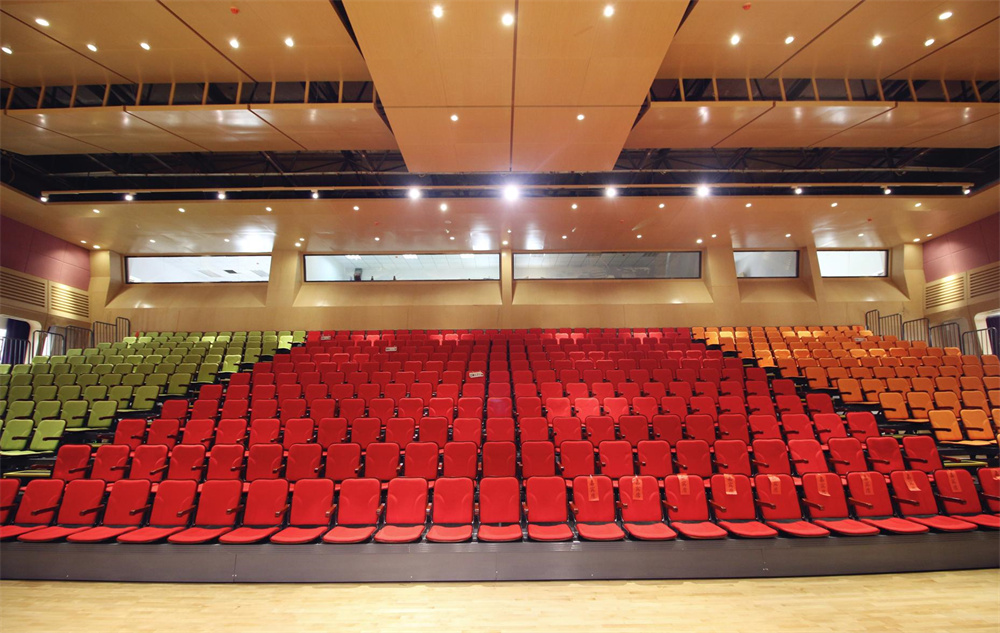 2015年該學(xué)校采購部門聯(lián)系到綠蛙公司,針對學(xué)校禮堂打造可伸縮的看臺座椅。經(jīng)過幾個(gè)月的商談溝通,最終定下了合作,并在當(dāng)年底完成了伸縮看臺的安裝。