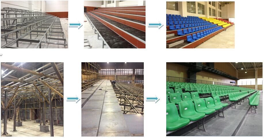 2、該看臺(tái)避免了在室內(nèi)構(gòu)筑水泥臺(tái)階等土建工程的麻煩,具有安裝、拆卸方便的特點(diǎn); 特別是對(duì)于非首層、承載力達(dá)不到土建要求、多年后便于拆卸另有他用的的館內(nèi)使用。