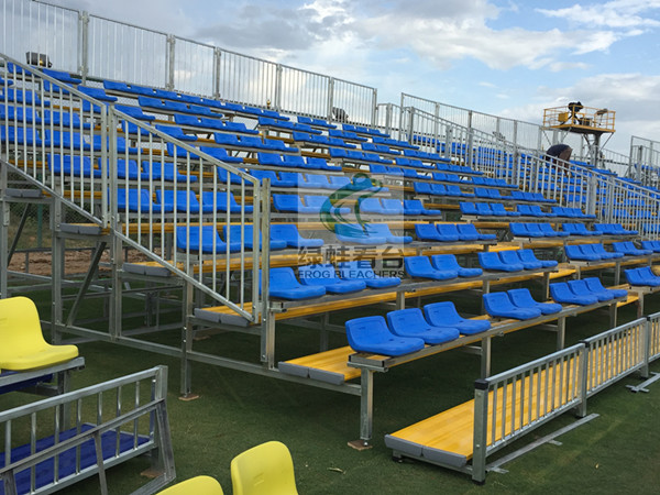 2、該看臺避免了構(gòu)筑水泥臺階等土建工程的麻煩,具有安裝、拆卸方便的特點; 特別是多年后便于拆卸另有他用的的場地使用。