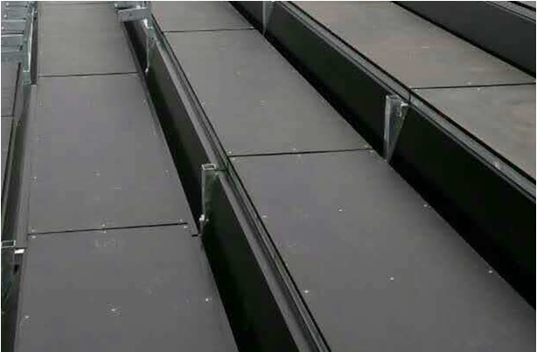 綠蛙斜梁式可拆卸拼裝看臺,不同于菊花扣式結(jié)構(gòu),該看臺主要采用大型高強(qiáng)度斜梁式鋼結(jié)構(gòu)作為承重構(gòu)件,輔以必要的型鋼支架系統(tǒng),大量采用高強(qiáng)度螺栓聯(lián)結(jié)固定,從而搭建成多層看臺系統(tǒng),一般應(yīng)用于多層看臺,8至20層。