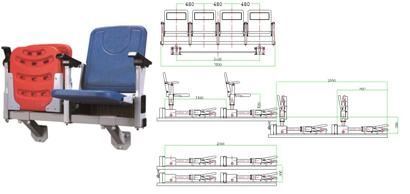 b.后置式高靠背翻版椅伸縮看臺(tái)(一層兩排)