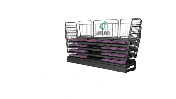 伸縮看臺(tái)又稱活動(dòng)看臺(tái),伸縮看臺(tái)拉伸成臺(tái)階形時(shí),翻起座椅供觀眾舒適地欣賞節(jié)目,收縮成匣子狀時(shí)則占用很少的空間,讓出場(chǎng)地以安排他用。伸縮看臺(tái)可充分利用室內(nèi)的有限面積,滿足不同功能情況下的多座位要求。