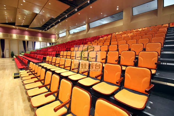 此看臺座椅采用高靠背軟包翻板座椅,觀眾坐感舒適,可以長時間觀看比賽及演出活動,主要使用于演播廳、會議室等場所;此看臺使用簡單,回收方便;看臺收回后整體美觀大方。