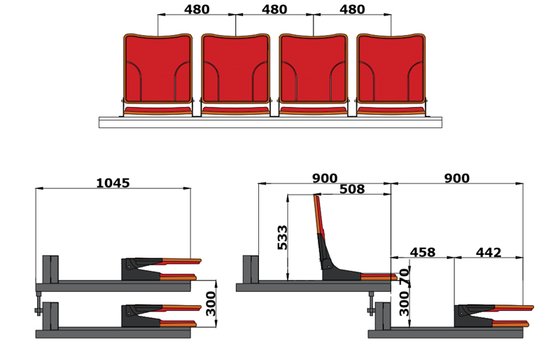 伸縮看臺又稱活動看臺,伸縮看臺拉伸成臺階形時,翻起座椅供觀眾舒適地欣賞節(jié)目,收縮成匣子狀時則占用很少的空間,讓出場地以安排他用。伸縮看臺可充分利用室內(nèi)的有限面積,滿足不同功能情況下的多座位要求。
