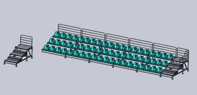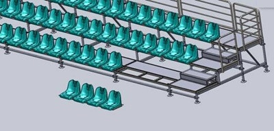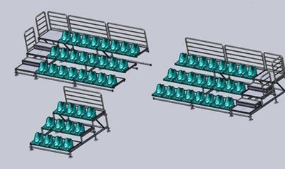 該型看臺可以搭配低靠背或中靠背注塑椅, 安裝簡易方便。層架采用焊接整體模塊化設計, 所有部件可以互換通用。
