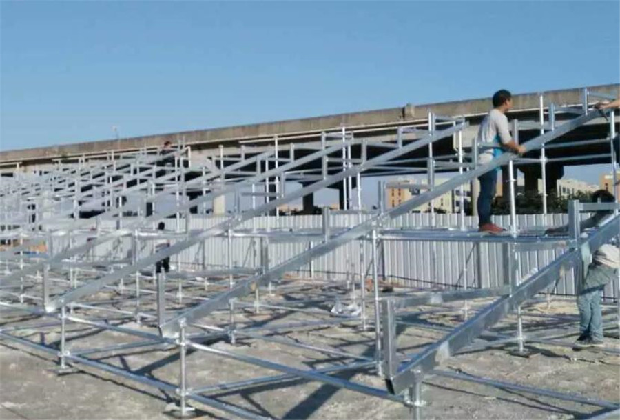 3、看臺整體支架采用鋼結構,承重的立柱桿需采用φ48×3.0鋼管,立柱桿下連接可調節(jié)腳,地面不平時可調節(jié)高度確保看臺整體水平。支撐踏板的斜梁架采用100×50×2.0+50×50×2.0型鋼,橫連接桿采用φ48×2.0鋼管,斜拉桿采用φ40×2.0鋼管。