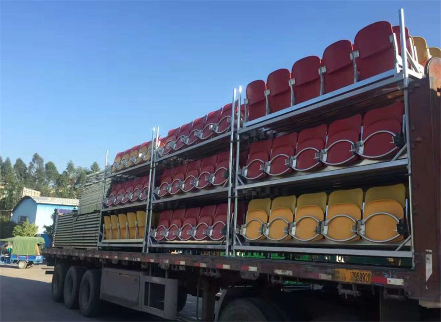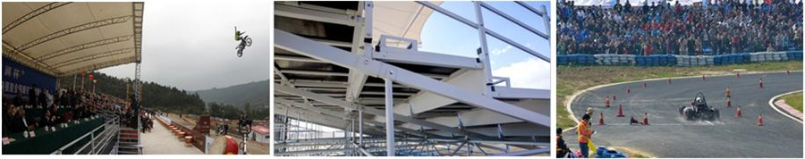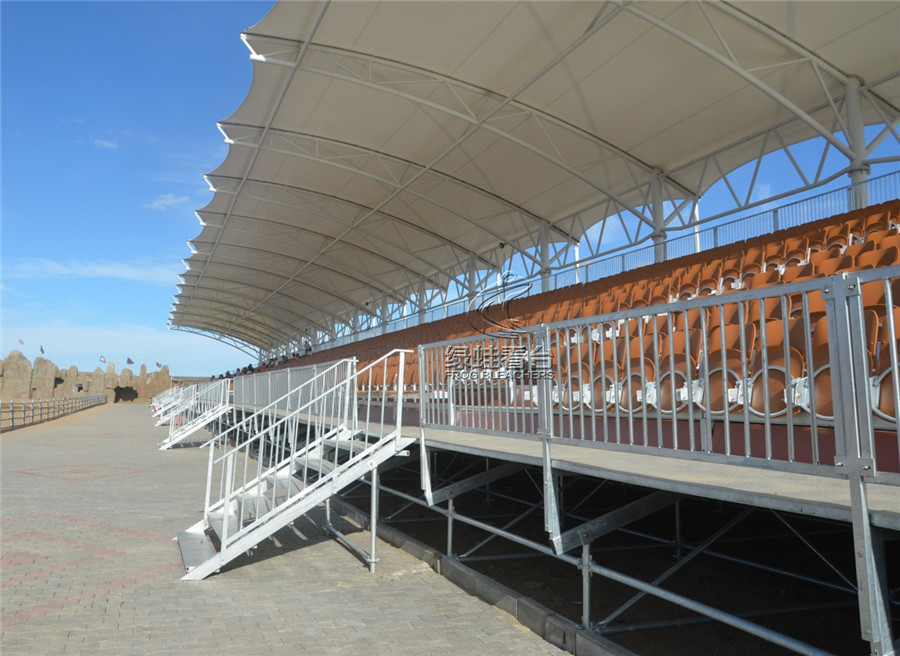 1、看臺采用方便拆卸的結構。整體結構需采用標準件、模塊化設計,看臺的各種部件,如支架,踏板,側板,護欄,座椅等,皆可隨意搭配組裝,可根據(jù)場地及觀眾席位需要進行各種層高、位數(shù)的拼裝組合。