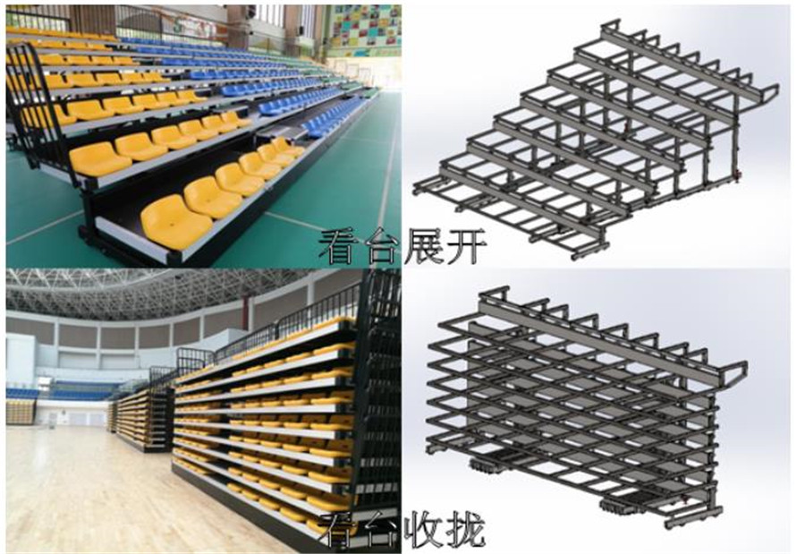 伸縮看臺也稱為活動看臺,活動看臺的稱呼是相對于固定看臺而來,伸縮看臺拉伸成臺階形時,看臺上的座椅供觀眾舒適地欣賞節(jié)目,收縮成匣子狀(似抽屜)時則占用很少的空間,讓出場地以安排他用。伸縮看臺可充分利用室內的有限面積,滿足不同功能情況下的多座位要求。伸縮看臺廣泛應用于體育館、會議室、示教室、演播廳、多功能廳等。
