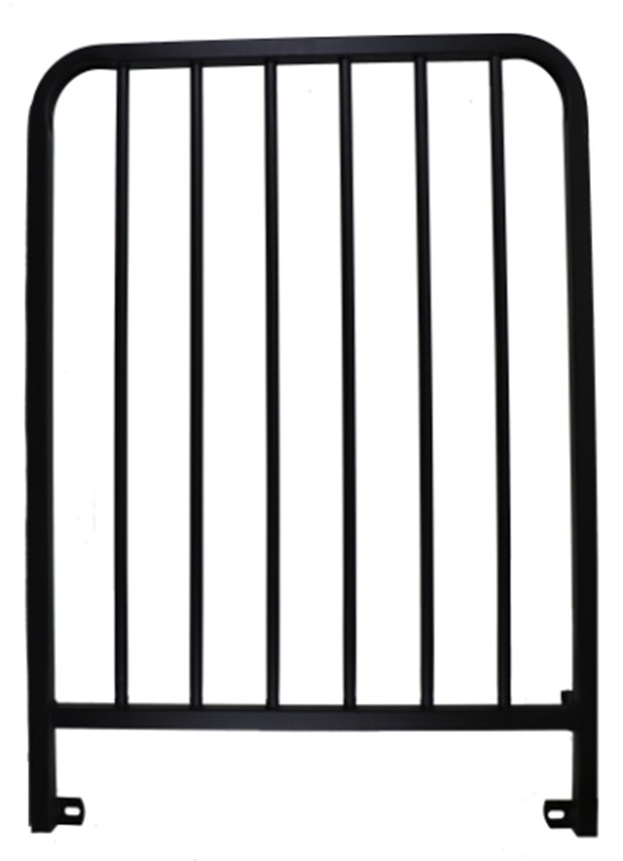 伸縮看臺床架側邊無切角部分安裝伸縮型安全應護欄在伸縮的過程中護欄無需插拔,護欄的表面采用噴塑處理??磁_的兩側每層床架側邊安裝有斜護欄,護欄的高度為1100MM,看臺的后側裝有垂直護欄,護欄的高度為1100MM,兩側的護欄和后側的護欄包圍起來兩者之間的空隙不超100MM,護欄采用鋼結構,表面外框采用30mm×30mm家具管彎曲成矩形框,護欄直角部分做圓弧處理。護欄框內嵌垂直部位采用焊接連接,內嵌垂直桿件采用直徑19mm家具管,桿件凈距也不應大于100mm。側護欄帶有斜角使得每一層的護欄處于不同立面上,在看臺伸展收縮時,不同層護欄不會互相碰撞,護欄無需插拔。側護欄與床架連接是由三個螺栓連接,保證護欄能夠實現(xiàn)橫向沖擊不出現(xiàn)斷裂,不出現(xiàn)變形。各護欄的水平靜載荷應能達到:加載60Kg/㎡30秒,卸載后無明顯永久變形。護欄的垂直靜載荷應能達到:加載100Kg/㎡1分鐘,卸載后無明顯永久變形。