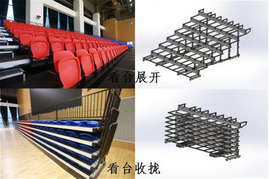 伸縮看臺也稱為活動看臺,活動看臺的稱呼是相對于固定看臺而來,伸縮看臺拉伸成臺階形時,看臺上的座椅供觀眾舒適地欣賞節(jié)目,收縮成匣子狀(似抽屜)時則占用很少的空間,讓出場地以安排他用。伸縮看臺可充分利用室內(nèi)的有限面積,滿足不同功能情況下的多座位要求。伸縮看臺廣泛應(yīng)用于體育館、會議室、示教室、演播廳、多功能廳等。