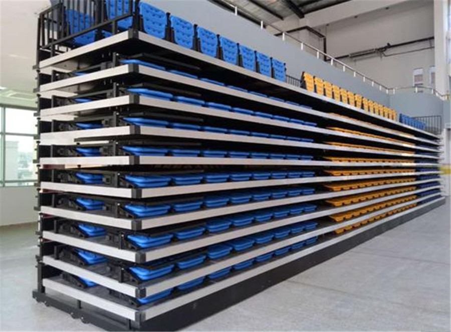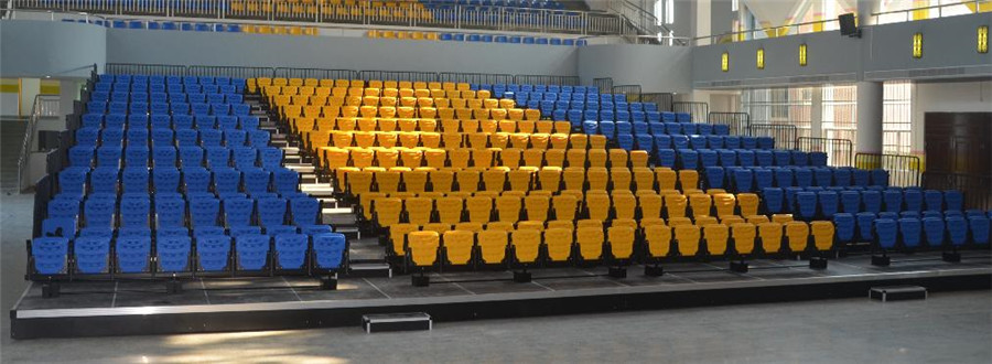 1、 座椅安裝:活動(dòng)看臺(tái)座椅采用高靠背翻板折疊吹塑座椅,后置式安裝,座椅通過(guò)專用工具手工整排翻動(dòng),翻動(dòng)過(guò)程靈活、輕巧。