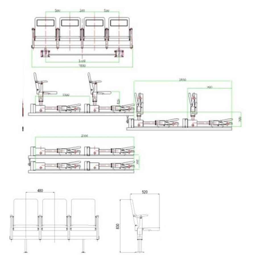 2、 座椅外形尺寸:480W×520D×830H。允許正負(fù)10mm的偏離。座椅安裝間距480mm。