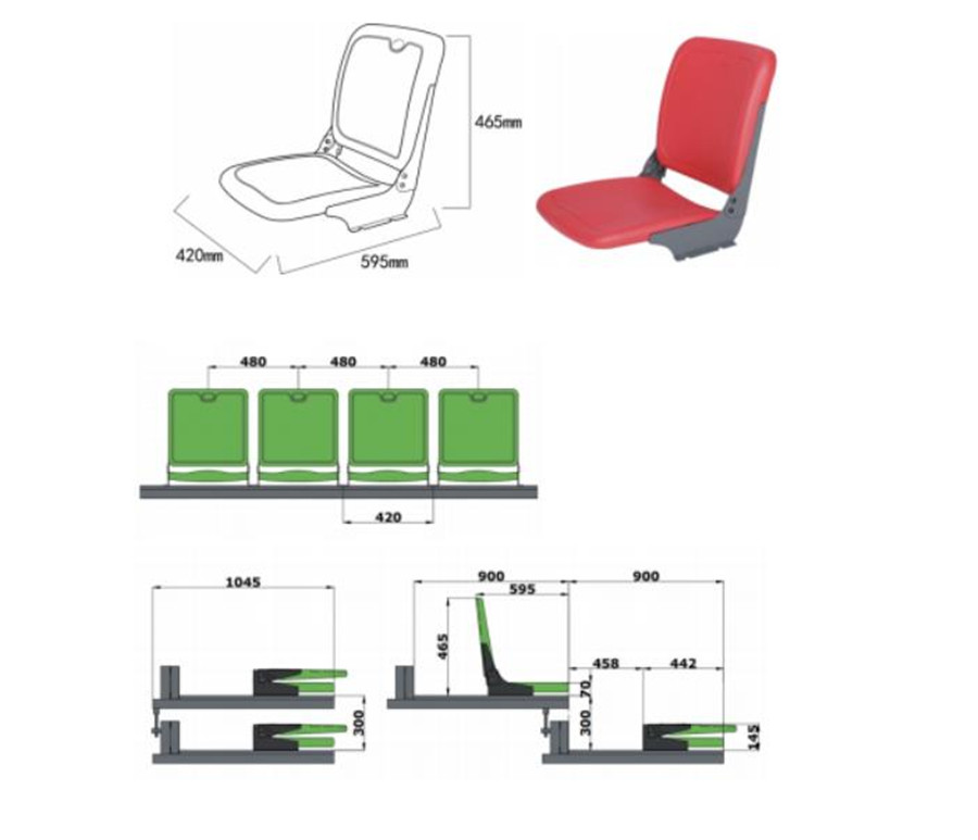 活動(dòng)看臺(tái)座椅采用低靠背中空吹塑座椅,前置式安裝。