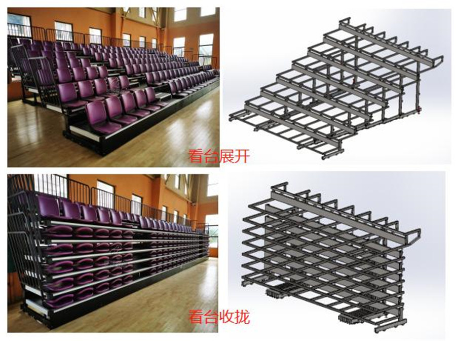 伸縮看臺(tái)也稱為活動(dòng)看臺(tái),活動(dòng)看臺(tái)的稱呼是相對(duì)于固定看臺(tái)而來,伸縮看臺(tái)拉伸成臺(tái)階形時(shí),看臺(tái)上的座椅供觀眾舒適地欣賞節(jié)目,收縮成匣子狀(似抽屜)時(shí)則占用很少的空間,讓出場(chǎng)地以安排他用。伸縮看臺(tái)可充分利用室內(nèi)的有限面積,滿足不同功能情況下的多座位要求。伸縮看臺(tái)廣泛應(yīng)用于體育館、會(huì)議室、示教室、演播廳、多功能廳等。