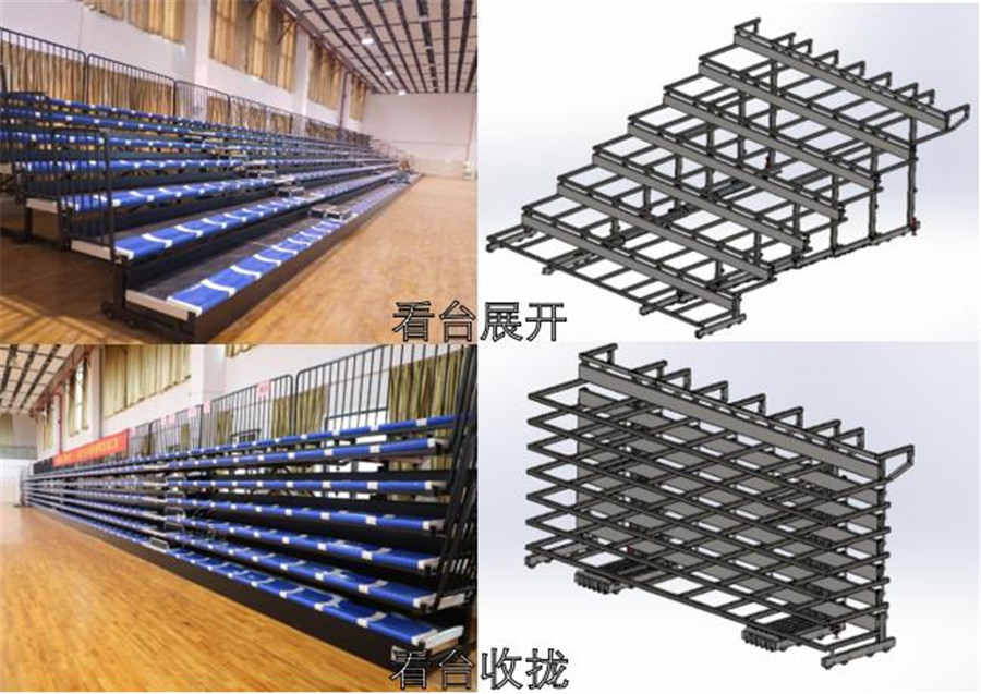 伸縮看臺也稱為活動看臺,活動看臺的稱呼是相對于固定看臺而來,伸縮看臺拉伸成臺階形時,看臺上的座椅供觀眾舒適地欣賞節(jié)目,收縮成匣子狀(似抽屜)時則占用很少的空間,讓出場地以安排他用。伸縮看臺可充分利用室內(nèi)的有限面積,滿足不同功能情況下的多座位要求。伸縮看臺廣泛應(yīng)用于體育館、會議室、示教室、演播廳、多功能廳等。