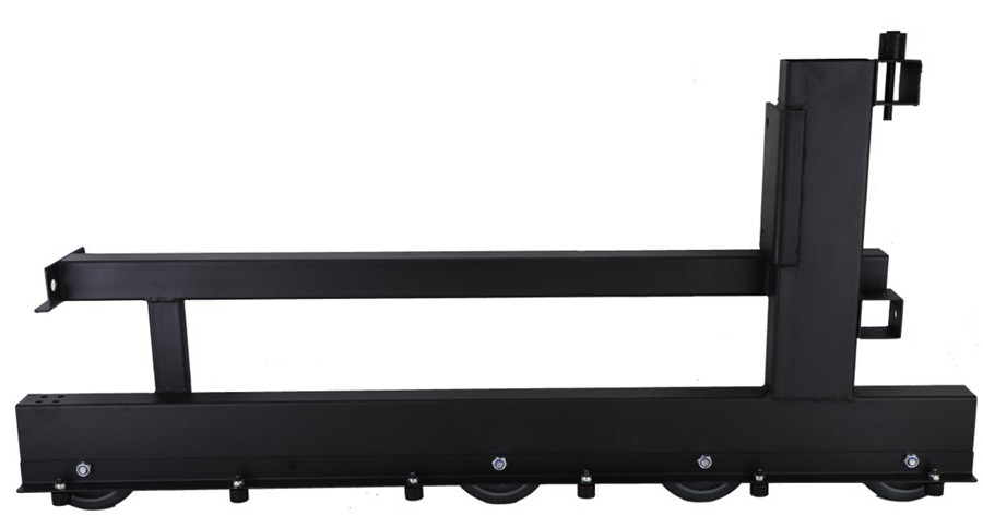 (6)看臺(tái)床架結(jié)構(gòu)的下部行走機(jī)構(gòu)(走輪架)需帶糾偏卡槽,床架結(jié)構(gòu)中每排行走腳輪部分應(yīng)有自動(dòng)鎖定裝置,以保證伸縮看臺(tái)順序展開(kāi)及收合,且展開(kāi)后不會(huì)出現(xiàn)意外收合情況。看臺(tái)床架結(jié)構(gòu)的下部行走機(jī)構(gòu)(走輪架)由3mm鋼板折彎成“幾”字形,走輪架一側(cè)折成凹型卡槽,另一側(cè)折邊必須安裝數(shù)量不少于5個(gè)的可轉(zhuǎn)動(dòng)的塑膠輪,塑膠輪與相鄰的走輪架凹型卡槽咬合,保證看臺(tái)在伸縮過(guò)程中流暢自如。整體安裝要求在2000次展開(kāi)和收攏后,伸縮軌道仍具有適用性。走輪架截面示意圖: