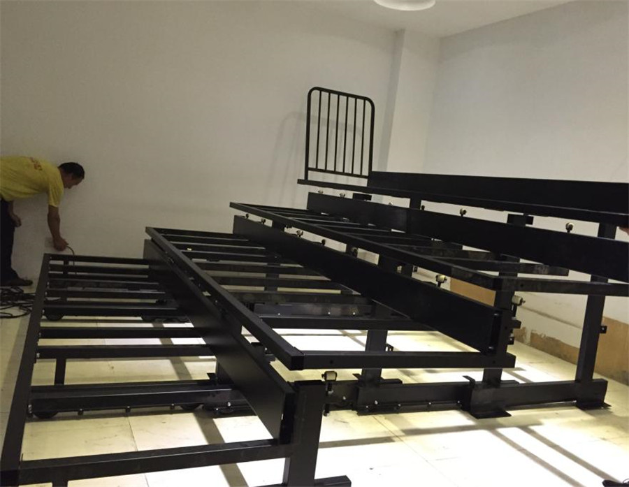 1、 座椅安裝:活動(dòng)看臺(tái)座椅采用高靠背包棉翻板座椅,后置式安裝,座椅通過(guò)專用工具手工整排翻動(dòng),翻動(dòng)過(guò)程靈活、輕巧。
