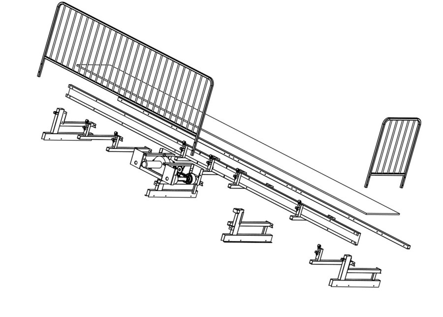 (5)看臺(tái)力學(xué)性能:伸縮看臺(tái)整體架構(gòu)應(yīng)具備較高的、安全的力學(xué)性能,臺(tái)面的承載需滿足觀眾落座的安全要求,并且在觀眾落座后,橫向具有較強(qiáng)的穩(wěn)定性。臺(tái)面靜載荷應(yīng)能承受6KN/㎡的載荷30分鐘,卸載后無(wú)明顯變形,無(wú)損壞。看臺(tái)展開(kāi)后,在靜載試驗(yàn)基礎(chǔ)上,在正向及側(cè)向分別施加靜載360N的水平拉力均布載荷,持續(xù)5 min,看臺(tái)位移量小于活動(dòng)看臺(tái)長(zhǎng)度的1/200,且不得傾翻。